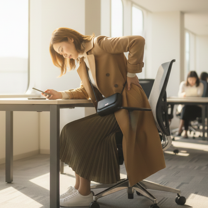 📌 長時間座り続けると、お尻や背中に圧がかかり、筋肉の血流が低下。