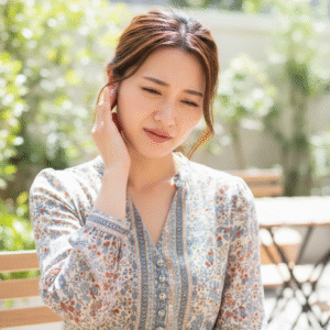 多くは 筋肉の緊張と姿勢のクセ によるもの。