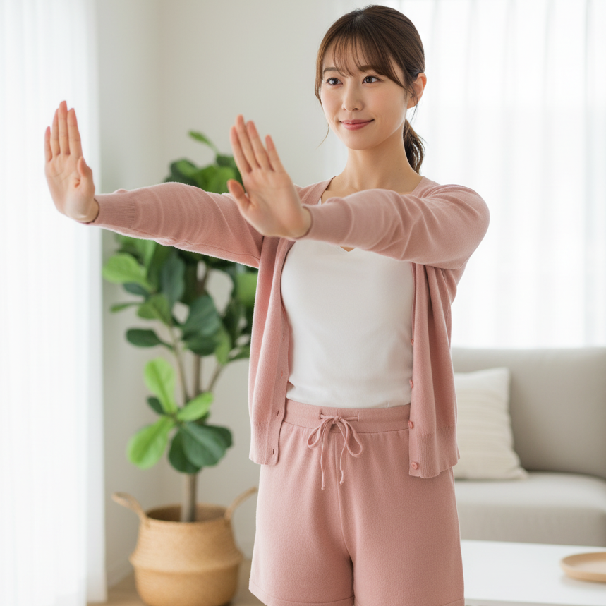 📌 肩甲骨を内側に寄せて、胸を軽く開くストレッチがおすすめです✨